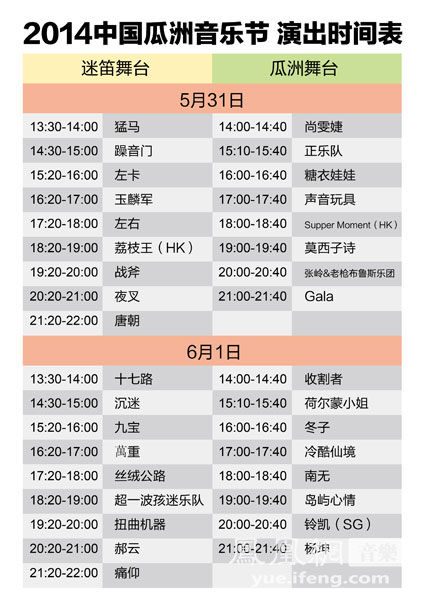 2014瓜洲音乐节演出时间表公布 正是启动售票