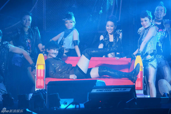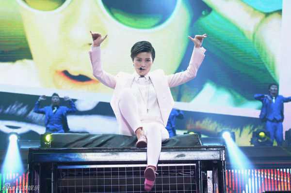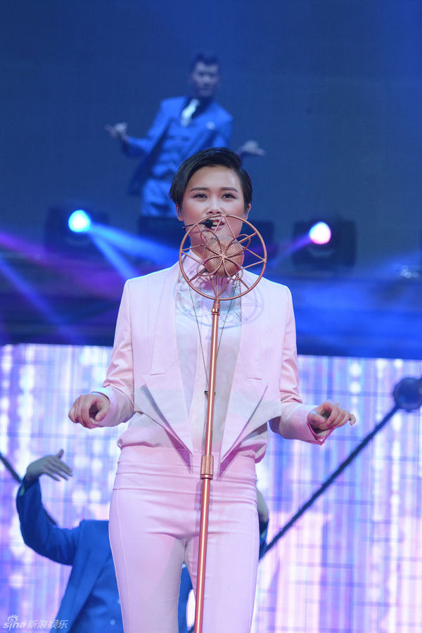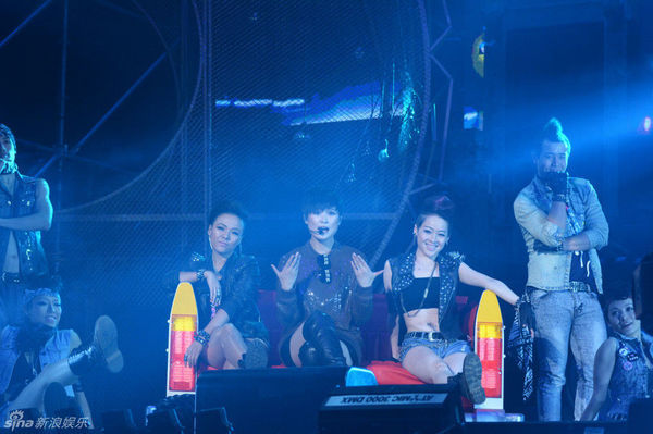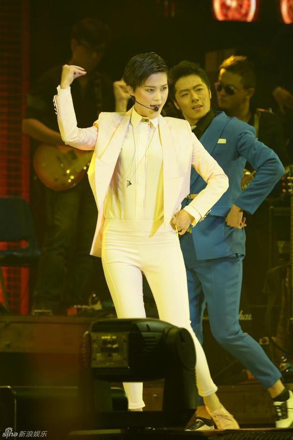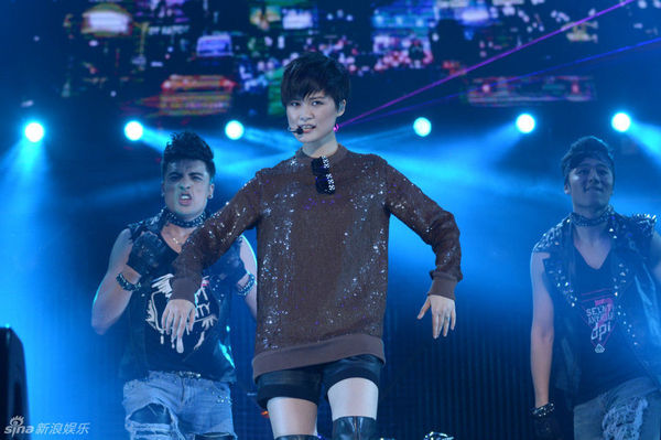 组图:李宇春上海开唱遭男舞者抱父母首度现身